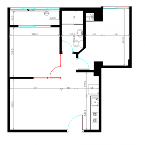 若只是要解決客廳的採光,把房間與客廳的隔間上方切個氣窗即可改善(下圖紅色)這種方式必須房間沒把窗簾全拉起來,才能有些微透光,窗要多高多大?是否擴及到門? 可自行衡量房間內的隱私、是否有衣廚擋住....當然,隔間打掉也可以,只不過會變成客廳變大,少個房間...除了開個間接採光的窗之外,房間的門毛玻璃+門上的玻璃框,同樣可以改善透光,若純透光即可,切出的窗也不一定需要可開/關,因為大多會裝冷氣,應該只要用只要用鋁框+玻璃密閉即可。因為你的空間小,浴室和2個房間共用一個"走道動線",門最好不要亂移,否則若改個門又要多留個走道動線,會浪費空間。