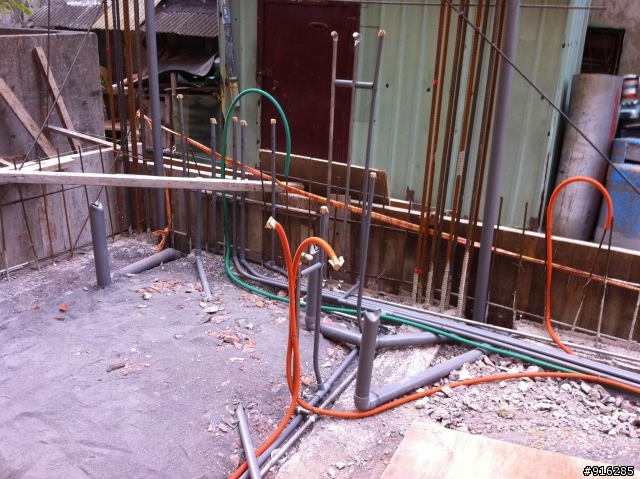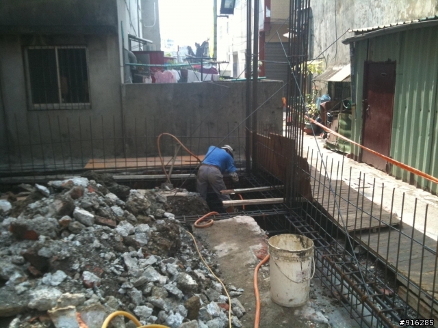 要挖地基..深約1.2米..地基底座牽網加大穩固力灌漿完之後..接著灌地樑..底座穩固之後回填夯實之後才灌地板增高之水泥砂漿
