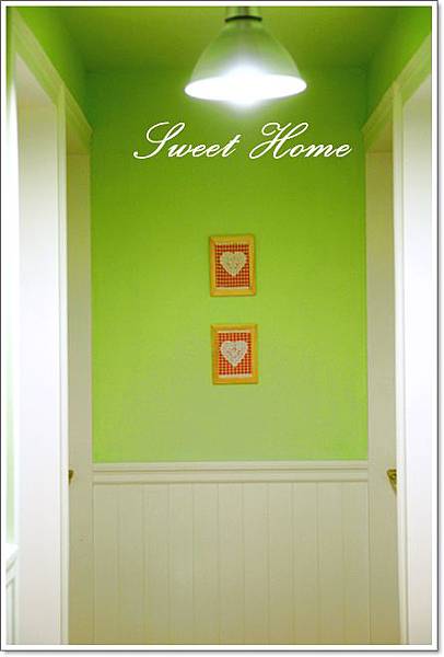 家裏的壁面一直空空的,太單調了。但因為找不到適合的掛飾,雖然可掛在牆上的東西不少,但個人比較喜歡有點鄉村,有點手作的風格,外頭的掛飾多以畫作為主,掛上去比較無法呈現我喜歡的感覺。用大創買來的39元木相框,再加上網拍賣來的蕾絲線勾成的心形圖案,原賣家說是杯墊,但我覺得用途不少。上下的蕾絲花邊還有紅格子布則是我平時做些簡單的拼布所收藏的。把這些東西組合起來就是我喜歡的手作掛飾了。總共做了三個先用隨意貼試掛兩個在牆上,看效果怎樣好像貼三個比較好看,有空再來試Evelyn愛生活
