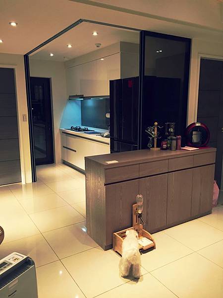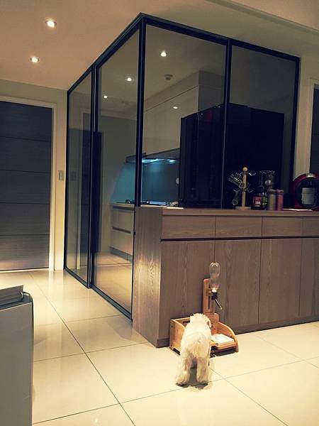 面對開式的廚房,用玻璃隔間來處理!(寶寶還是很努力吃飯)