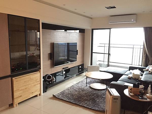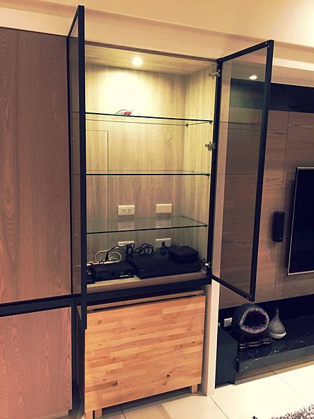 電器櫃,裡面藏著音響主機+第四臺機上盒+Apple TV+還有第二台網路基地台(後面的線還樣在整理)。