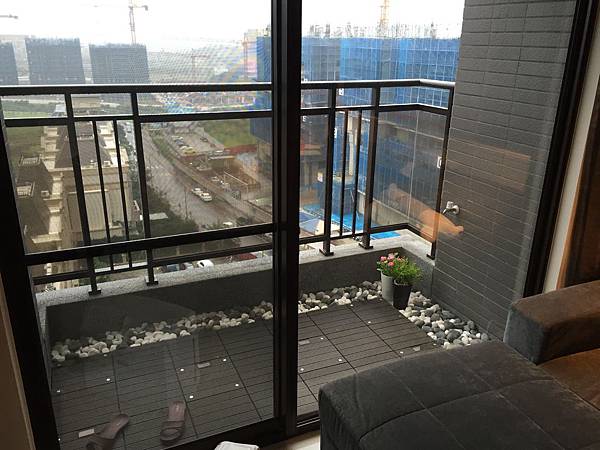 陽台部分,用仿木地板+鵝卵石來呈現!
