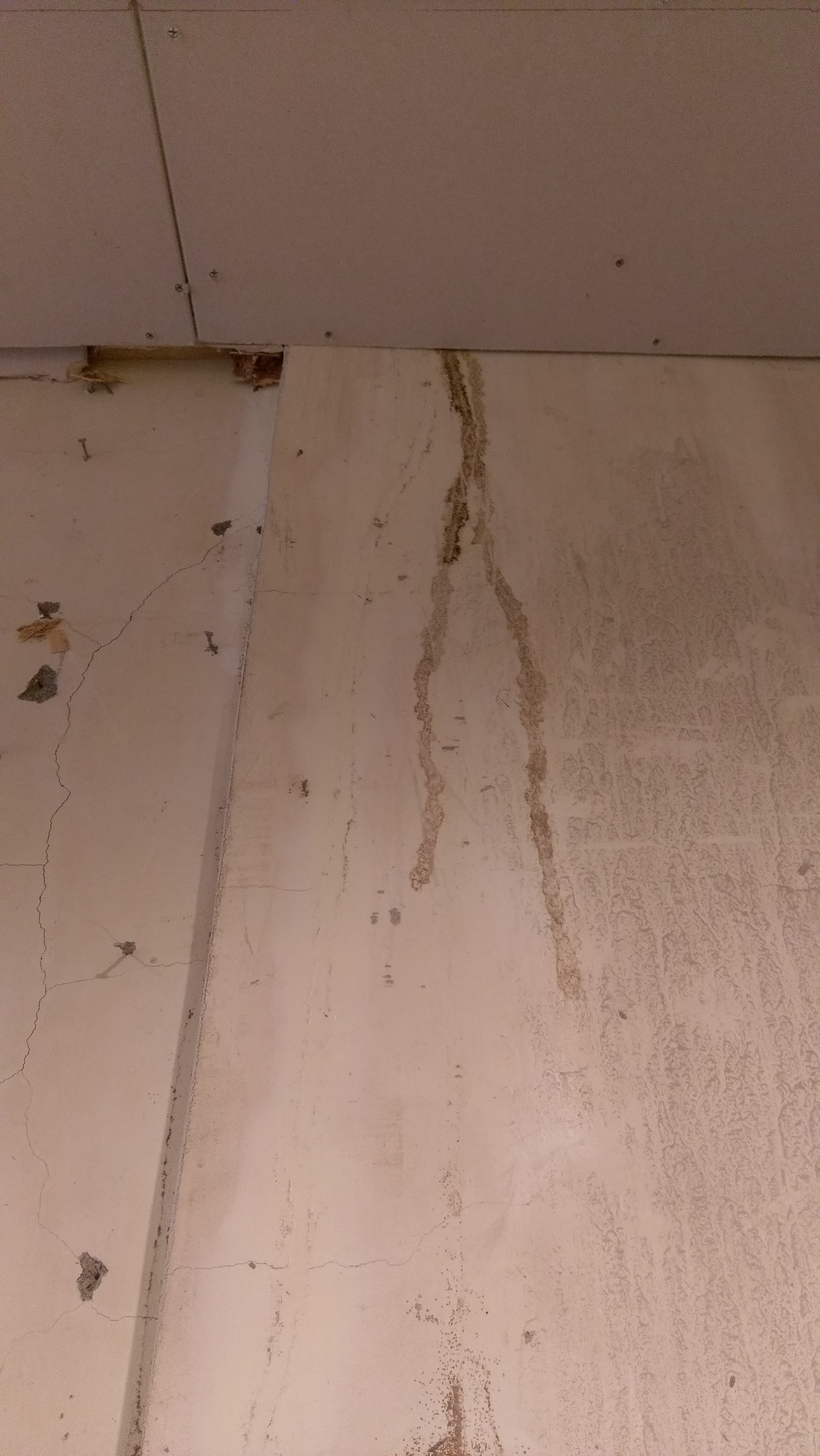 去年10月買了一間中古屋,最近才要裝潢,上禮拜開始拆除一些原本的裝潢(前屋主重新裝潢)上禮拜五設計公司告訴我有兩個問題 1.有壁癌 2.疑似有白蟻的痕跡跟仲介講後也很積極連絡前屋主告知這件事,但前屋主卻認為是屋子久沒住潮濕所造成的......但小弟認為跟久沒住潮濕應該沒有關係吧?!想請教各位先進是否真如前屋主所講呢?這是壁癌的牆面這是壁癌下方踢腳板的板子 背面已經潮濕發霉黑掉了下面都是疑似白蟻的部分