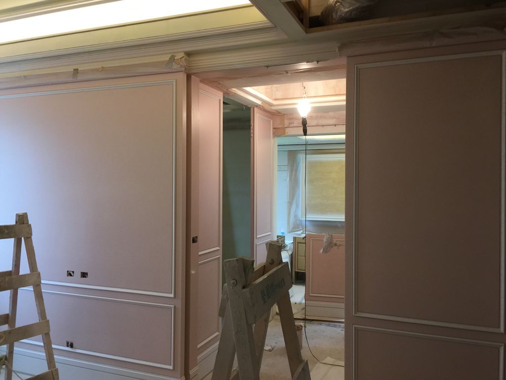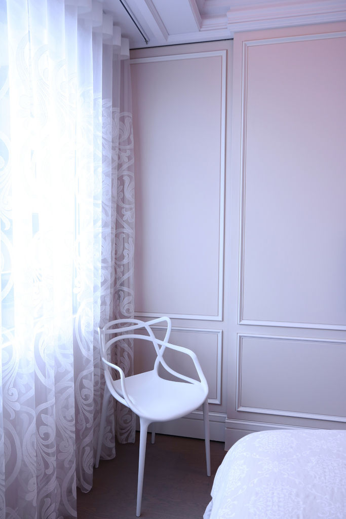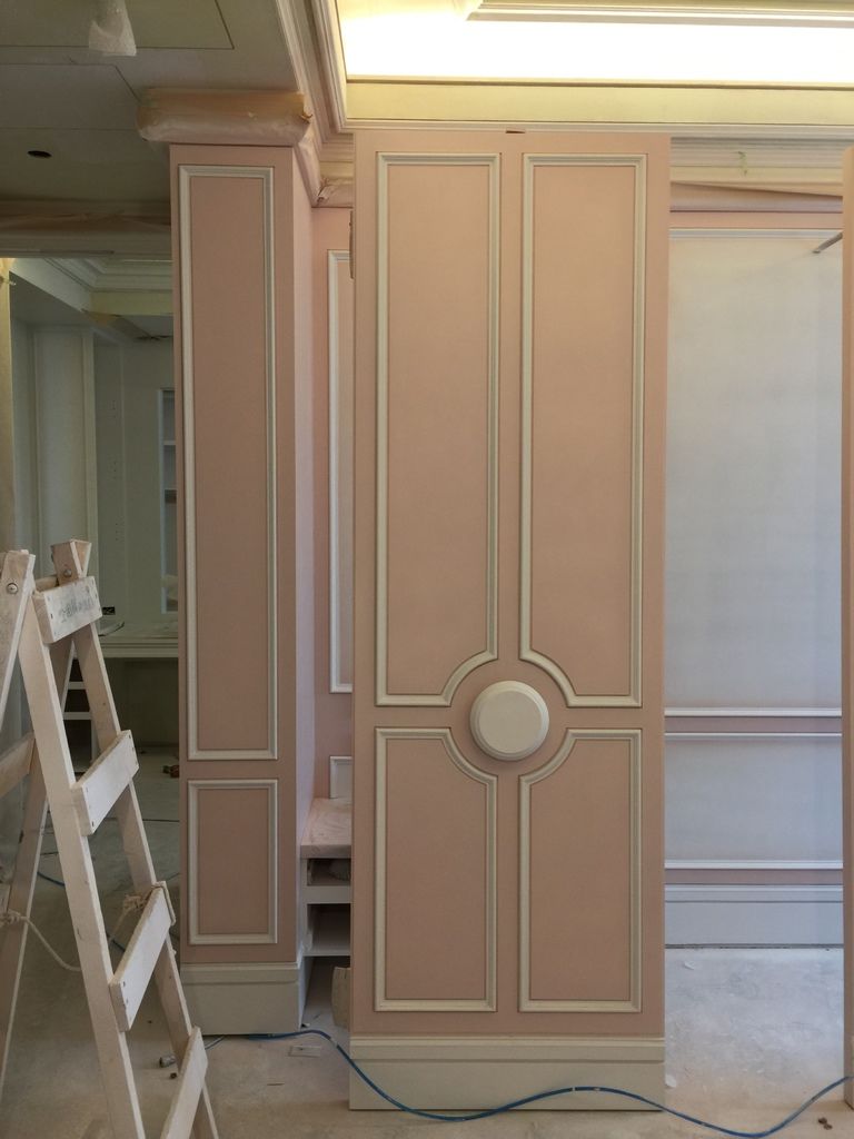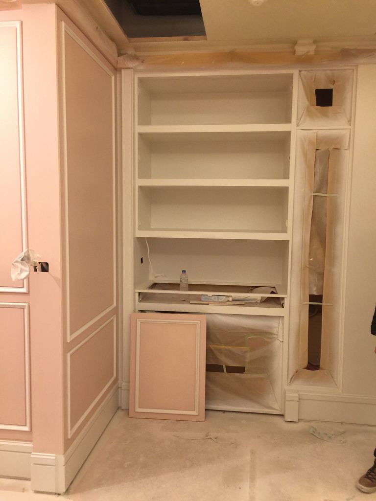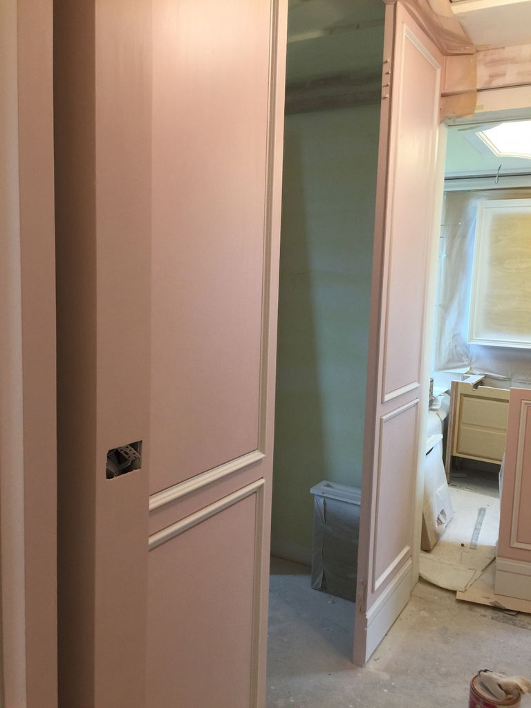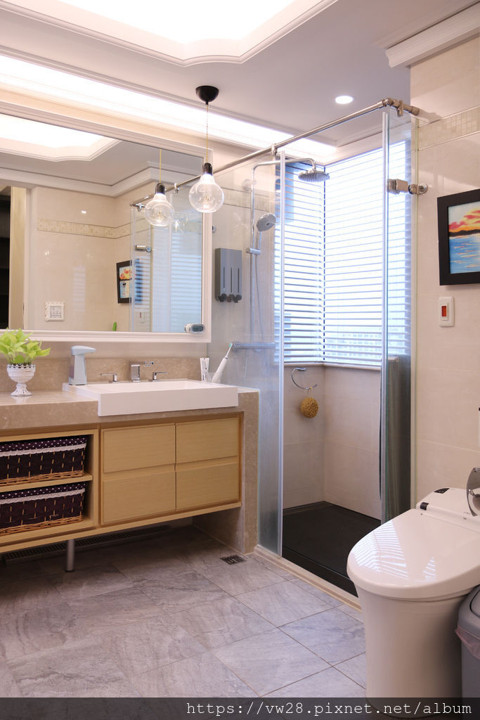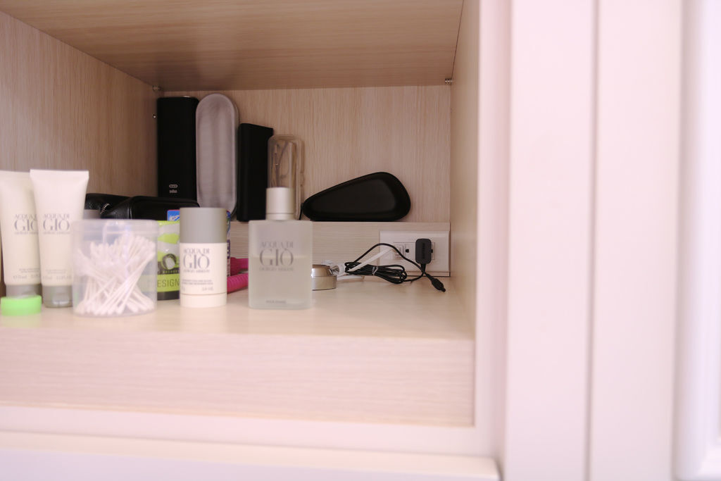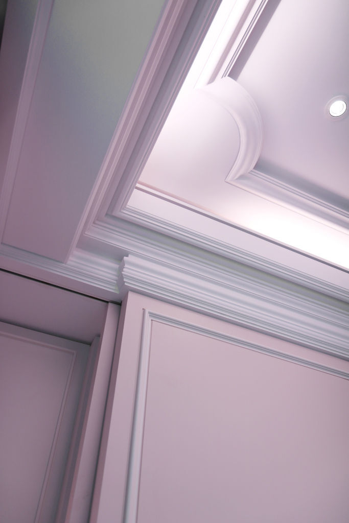 不好意思各位久等啦!!說好的主臥篇終於來了因為本人我身兼數職實在太忙了包含中間這段日子還跑去生小孩 ~哈哈如果需要前情提要可以去看看這三篇玄關篇 客廳篇 書房篇 最近文思泉湧想要再好好的經營一下部落格雖然一直都是三分鐘熱度但還是滿愛自言自語的 那麼我來介紹一下我們的主臥室吧~ 有別於公共空間的藍色新古典氛圍主臥想要走溫和一點的路線走 奶茶粉 的色調(跟 綠茶婊 沒有什麼關係) 這個顏色其實拍照很難表現出來我很認真地拿了單眼出來拍因為不是很會拍加上住在裡面都兩年了整理起來真是要我的命 拍攝不如專業攝影師專業請大家包涵呦~我已經盡量努力拍了 哈哈 一開始在施工的時候油漆師傅調錯了顏色變成比較甜美的粉色我請他們全部重漆才回到本來的奶茶粉事後想想覺得本來的甜美感也不錯啦但覺得如果要看很久的話彩度還是盡量降低比較好 先從大門開始介紹好了我們的主臥室是採取現在流行的二進式也就是要先經過書房才會到達主臥以求主臥的隱密性一般來家裡作客的客人如果不經過引導是無法輕易到達私人空間 以風水來說臥室是主夫妻和諧的搭配粉紅色調的女王火烈鳥圖像增加女主人氣場 (哈哈~就是小三別想給我進來!!) 進入後的右手邊是一個很深的展示櫃 主要是要展示名貴包包用的不過我沒有什麼厲害包包可以展示(我在時尚產業工作反而不太在意流行或名牌這事,好像有點反骨)(入錯行) 下面是放一些可以隨便亂塞的包包或者要放什麼都可以 這個櫃子的尺寸很深寬也可以把層板抽掉放置保險箱 我覺得臥室一定要有一個隨手擺放物品的地方這裡除了可以暫時擺放物件之外還是一個展示手錶或是首飾的空間並加上鎖頭 比較安心一點這邊留有插座除了香氛夜燈之外我還放了安眠降噪機因為這個東西不能放在床頭旁邊(要離床遠一點)所以放在這裡比較剛好 展示櫃本來是更大的但是我覺得不需要那麼大的展示空間側邊就規劃成直立型的暗櫃這邊可以收納長形的立燙機 還有吸塵器當然也要留有櫃內插座這樣子吸塵器在收納的時候也可以充電上面就放各式吸頭,非常方便 因為只能讓門從床頭出入這樣我覺得很沒安全感加上風水上也不適合我就在這裡加上了屏風的設計變成長廊的感覺因為完工之後覺得整個主臥線條有點冷硬所以採用維多莉亞式的開關面板作為點綴讓整個空間瞬間溫柔起來 有了屏風之後,進入房間時人會出現在床上的人腰部以下的位置這樣比較有安全感 這個屏風因為還有有空間所以也做成影藏櫃可以放一些毛巾等物件廊道這裡規劃了掛畫的空間所以留了掛畫軌道因為最近壓力很大有去學了一下油畫特別畫了一張適合房間放的粉色系捕夢網畫起來都很大幅也很重就可以掛在這裡 另外我們的床頭櫃也有經過一些巧思在床頭上方除了有留插頭跟主燈開關之外抽屜裡面也留有插頭身為現代人睡前實在無法不玩一下手機抽屜的特殊造型:凹 可以讓抽屜關起來的時候還是可以一邊充電一邊使用亂亂的線也可以完全看不見左右兩邊都留有一樣的設計而下面的抽屜就一般收納的功能檯面的大理石我們是選用有原石手感的花花的不容易髒摸起來又有回到大自然的感覺(有這麼誇張!?) 背牆是線版+壁紙我覺得我選的好像有點太素了?是不是因為這樣更衣室選了一個花不溜丟的? 再來是房間電視牆這一面廊通往主衛浴設計了一個寬敞的廊道我非常喜歡這個廊道的氛圍不但很有氣勢也讓臥室空間變得開敞明亮 多層次的線版設計搭配圓形把手與衛浴門相互呼應但我覺得如果晚上睡覺時這裡有一個空間又感覺怪怪的所以做了一道隱形拉門讓夜晚睡覺時的空間變得溫馨舒適電視牆的左邊是我的化妝台因為不喜歡關在更衣室裡面化妝的感覺所以將化妝台做在臥室處化妝台通常容易亂亂的如果懶得整理一樣可以把他關起來眼不見為淨 而且重點來啦!!!對於更衣室來說這是一個轉角的畸零空間放在臥室更顯得有效率! 除此之外我又要求再往更衣室推25公分這樣我就有更多的化妝品以及雜物的放置處小小的一個空間變化就多了這麼多的收納功能讓我非常的自豪~覺得好像空間魔法師 哈哈 其實我以前是真的很想念室內設計的~可是現在轉行也來不及了~只能在自己的家裡好好發揮啦 化妝台的鏡面後做了類似間接照明的工法讓化妝台更明亮只是開燈處在上方覺得似乎有點不方便(好懶喔我) 上方還有個收納空間覺得木工師傅很厲害為了讓我好拿取東西做了L型的門片原本鏡面只有拉到160公分高我後來要求拉到185公分以上如果鏡面不夠高豈不是很像在箱子裡面化妝了? 大家在裝潢的時候一定要很注意比例問題喔~在平面圖的時候就要認真的看如果有疑慮就模擬 比一下身邊的牆面尺寸還好我有發現這不是要我的感覺~不然我應該後悔死了~抽屜裡面我有加了插座的設計這樣吹風機吹完就可以直接收在裡面了~(而且說實在我好懶得拔插頭)(到底有多懶)電波導入儀器也是同理~ 每個人家裡電視下方總是莫名有留一個插座我是拿來插空氣清淨機~不過插座露在牆上真的好醜一樣用插座面板裝飾起來天花板這類資料網路上很少所以我們房間頂部的造型也分享一下~這部分是老公決定的!真是有夠多層的 回到我們很有氣勢的廊道設計這裡左邊是我的更衣室右邊是我老公的更衣室 中間的吊燈是去掏寶挑選