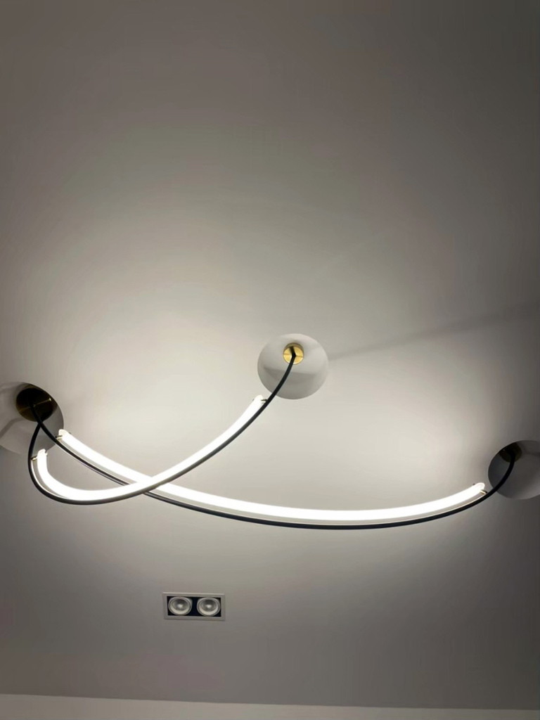 ▼客廳主燈也很有設計感,曲線的簡約線條讓空間更柔和生動