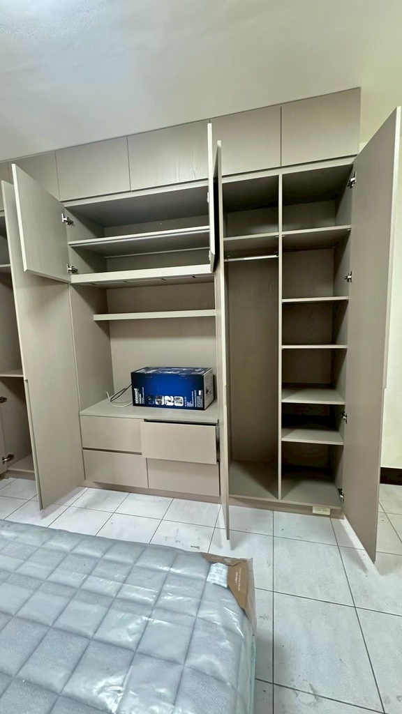 不過雖然只是稍微整理,但我自己是過來人,知道裝潢完的屋子就像打仗一樣,現場到處都是粉塵、木屑亂飛,尤其系統櫃裡面、廁所角落,全是裝修留下來的痕跡。