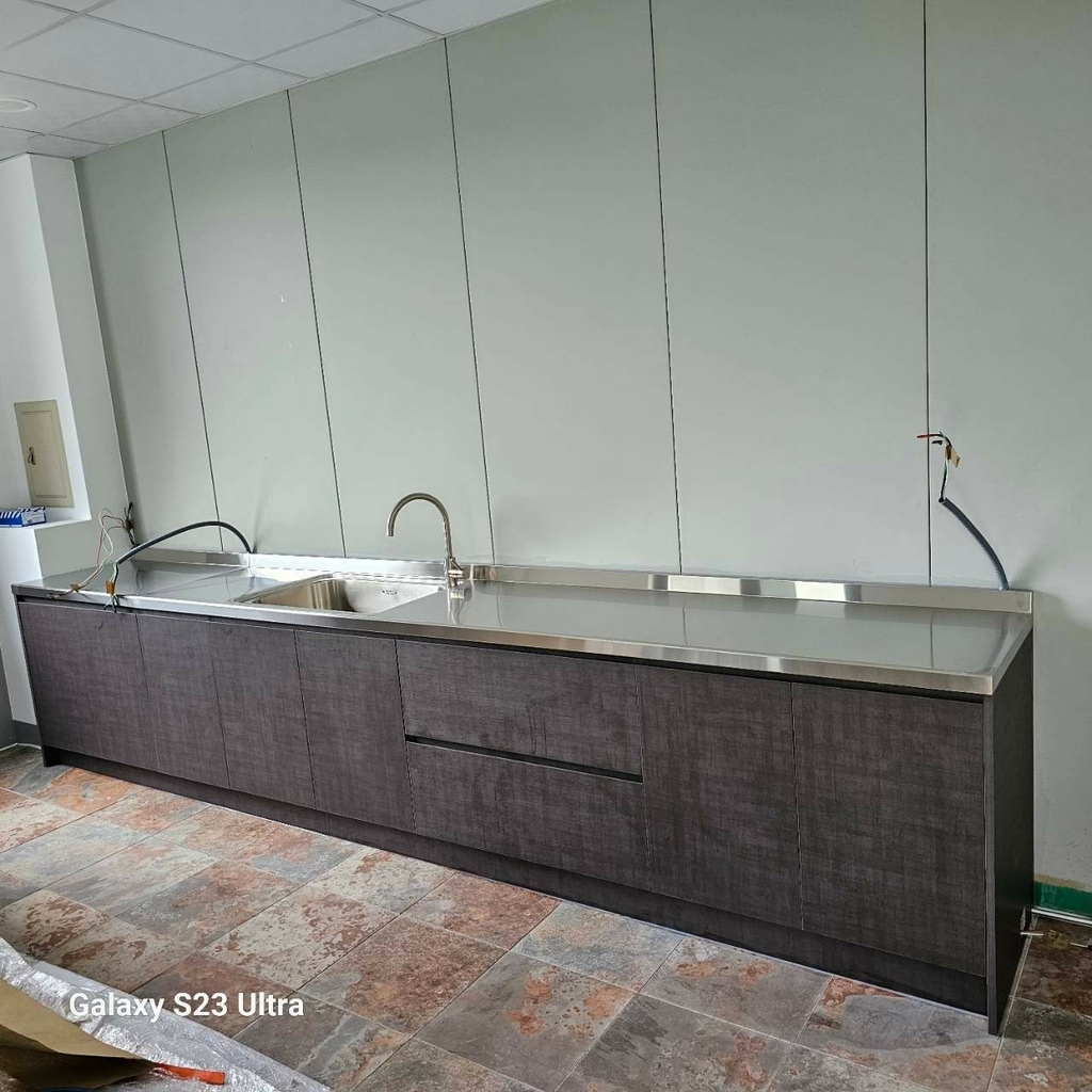 ▼考慮到爸媽的使用習慣,朋友特地在另一個空間規劃了小廚房,不鏽鋼檯面的設計不僅實用,清潔保養也很方便。