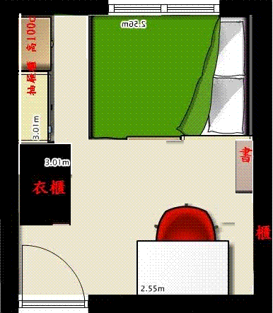 下個月要搬去和好朋友一起住新的房間大約兩坪多(3m*2.55m)偏偏我的東西又特多想了一想大略的擺設如下不知道各位大大有沒有什麼建議呢?如圖開門右邊是書桌, 床邊會設置兩個三層的斗櫃裝我永遠都不夠的衣服以及做一個空間的區隔, 比較不會一開門就看到我睡覺的醜態 原本也有考慮將書桌擺在窗邊, 但是這樣一來整體變得很難擺. 不知道板上各位有什麼建議嗎?