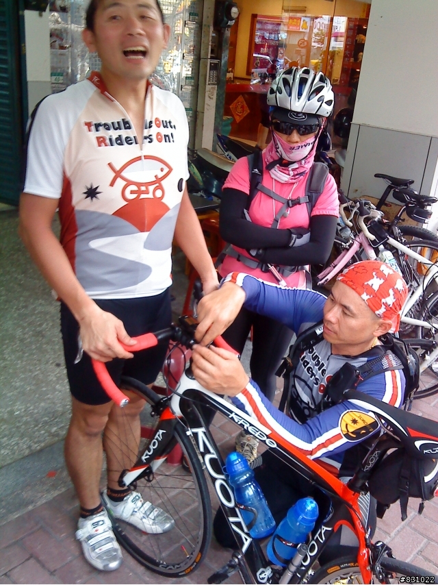 小羅哥~雖然你我都是男生~且你我應該都愛女生~但忍不住要給你三個飛吻~~第一、主辦個有吃、有喝、又狂騎的行程~讓我車車的毛病一一抓出來~第二、沿路狂幫我修車~有始有終~最後在請我們吃超超超好吃的冰之後~又幫我抓出龍頭沒鎖好的大問題~回想~我一開始的坡還抽車~之前的2P~之前的N趟中社~哇哩~都不敢想~還怪碳纖龍頭~第三、小羅哥和S大一起開課~把無牙式龍頭拆下來教我們認識、維修~S大張大嘴超訝異的說~怎麼組車組成這樣~超超超誇張~PS:每次永寧站的活動~我回程都坐不到捷運~下次要先體認一下~謝謝今天所有陪STAR過個充實週末的車友~~