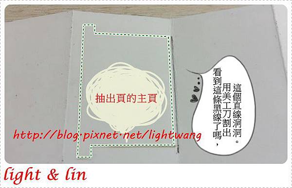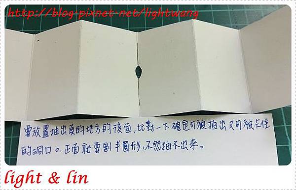 抽出頁需要的洞洞切好後,要趕快試試看,看有沒有辦法被卡住!!