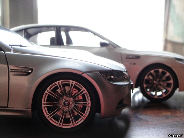 kaiuren wrote:恭喜大大入手美...(恕刪) 話說~AUTOart的Reventon (1:18)終於到啦!! 等好久了咧!!趕快獻醜一下!! 這現世只有20台的神駒!就是她啦!陸上戰鬥機來也!超炫的輪圈還有細緻carbon的排氣孔(?)可惜碟盤沒打洞性感屁屁 超科技感的車尾設計!!車頭照~進氣孔一定要簍空啦!! 準備起飛!!行李箱OPEN!! 有油壓連桿喔!! 跟一般直接做"插"進去的連桿不一樣喔~細膩跟爽度大增!缺點是不能開太大...上下連桿會脫落!! 而且車倒過來...門就開了!! 座艙開啟! 車門有簧力上彈! 內裝表現不俗~~沒這機會坐這位子了...需要小叮噹幫忙~XD細緻的尾燈組,還可以看到簍空網罩裡的風扇喔!! 帥呆了! 壓克力的引擎蓋! 這隻怪獸的6.5升V12心臟就睡在裡面~ (但0馬力!!)開門Say Hello吧!! 引擎跟引擎室都很細緻!! 沒有缺點!!連隱藏進氣孔都有做簍空喔! 引擎室連桿也是做成油壓連動!最後一張跟大家說再見吧!! 總結:不可多得的好物! 消光灰的烤漆,在把玩時後清理更方便!!車體與零件細緻的表現,真是很超值得的車模! Aa做給她的特規收藏盒也很精緻!還有一款是黑色烤漆版...礙於預算...沒有敗入...不然買來欣賞也是不錯!疑!??????????戰鬥機不是走了嗎? 怎麼攝影棚裡還有人!!???妳是!!!???BBBBBMW E92 M3 !!!!! Kyosho出版 (1:18銀) 顆顆...既然都開進來了~就順便拍拍照啦!!忘記換成黑色背景布...玩宅物還是不要太囂張...速拍速決!M3的標誌代表她不凡的地位! 可是變成印上去的!?是省成本? 還是刻蝕片做不出來??全CARBON車頂! 只有5.4KG喔!(實車) 跟Aa的CARBON表現法不一樣! 不是貼紙貼上去的!在金油層下面而且真的有碳纖交錯的層次感喔!!4.0升V8的心臟就在裡面啦! 超好看的空力座艙開啟! 細緻的內裝!! 讚!!M3迎賓踏板刻蝕行李箱開啟鯊魚鰭天線跟第三煞車燈這裡可以比較清楚看到碳纖交錯的表現!漂亮的19吋大腳! 還有亮銀打洞的碟盤!!用豬鼻跟大家說再見!!! 總結:不錯的車模表現~~烤漆也OK價格也算公道~~藍色跟紅色應該是比較值得收藏的版本~快來吧! 白色M3跟Safety Car M3