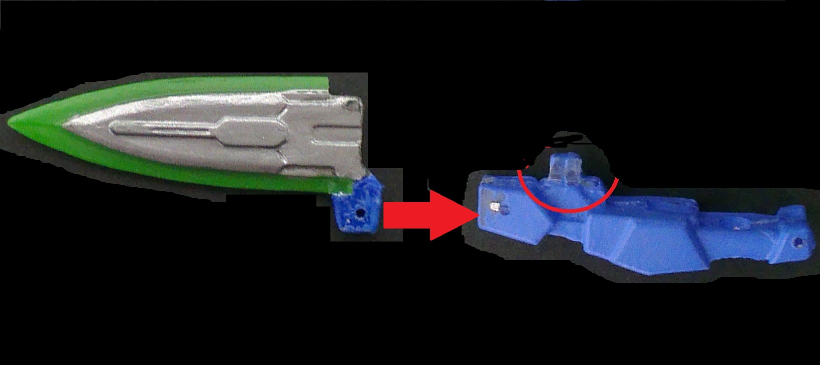 GN剣的改造 可能是我搞得比較複雜了點 再看各位先進有沒有其他更好的方式可以簡化這個過程然後推薦一定要用模型用的蝕刻鋸會比較好操作...先來個改完後的大圖側面圖可以看見我又增加了槍口的部分,讓步槍的型態更加完整進入改造的步驟,刀刃的部份我是先用蝕刻鋸先切開,完成後的步槍拆成這3部份來說刀刃的部份其實就跟X大改NEXT的方式差不多,但差別就是FW的GN剣少了紅色圈圈的這塊,這就是要先想辦法補給它的部份,這是刀刃收折旋轉的中心,一定要補上做法就是,切一塊不要的FW或是NEXT的軟膠,大小約莫5mmX5mm,厚度約2mm,然後切成下圖中灰色圖樣的形狀再用快乾黏上,紅色圈圈的位置,黑色的位置是要留著鑽洞塞卡準用的那黃色斜線的部份,是我刀刃切除後又磨掉的部份,但我後來發現其實並不會影響到它收折,所以不要磨掉也沒關係接著是藍色部份的剣柄,這部份的處理比較麻煩,要很小心的使用蝕刻鋸,不然可能會整組壞去分開後的藍色剣柄要先慢慢鋸開黃色斜線的部份成一個約莫3mm的[ 字形缺口像這樣↓然後再用蝕刻鋸沿著紅線從中間慢慢鋸開在鋸的時候要小心下圖紅色圈圈的卡準,要是不小心鋸斷了,又要再補一個會比較麻煩刀柄剖半之後呢,需要用搓刀或是打磨機,磨掉刀柄內側紅色斜線涵蓋的部份,主要是要收納刀刃與刀柄重疊的部份然後就將刀刃跟藍色刀柄組合,確認好接合的中心位置後鑽洞先暫時塞入卡準,測試一下轉動的角度和刀刃收容的部份,先不要急著將刀柄黏死,確定轉動收折都不干預之後分開刀刃跟刀柄,把刀柄用快乾黏合,最後再塞入卡準固定刀刃跟藍色刀柄最後再依個人喜好,塞入槍口的裝飾補件,因為我有多裝個槍口,所以它會干涉刀刃的組合,在上端刀刃的部份我有磨掉會相互干預的部份(黃色斜線)大概就是這樣,xpirit wrote:Converge可動...(恕刪)