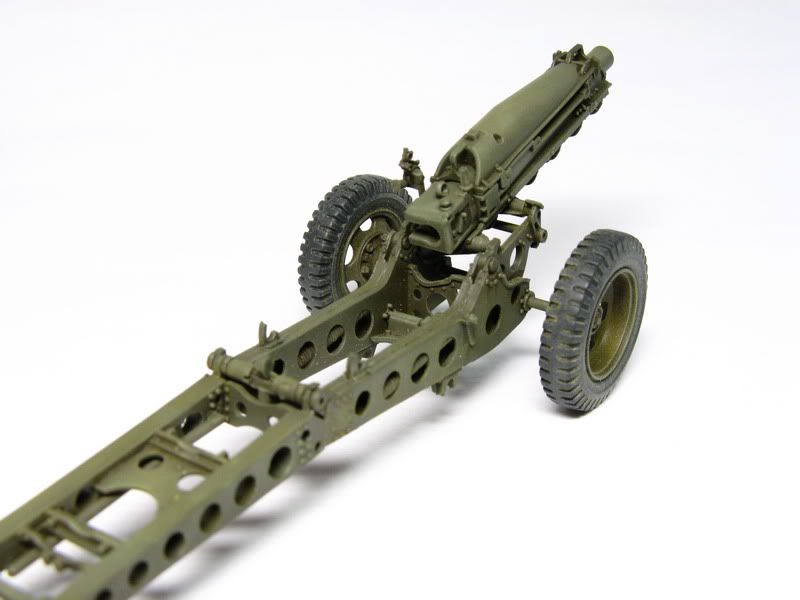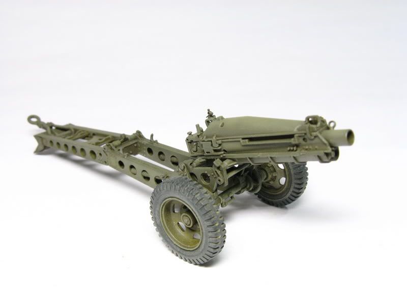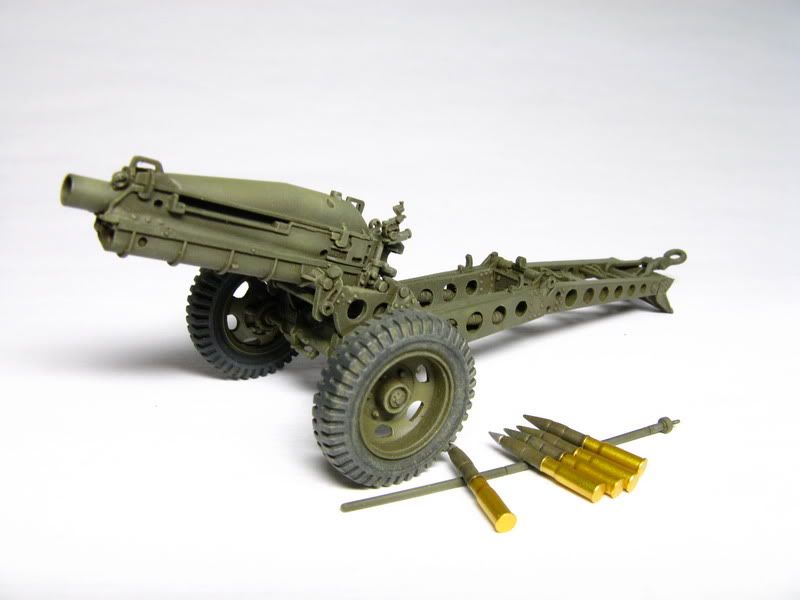 或許有些人對這門砲有特殊的回憶,所以在這裡也發一下.這個模子有一些頂出銷孔和毛邊的問題.雖然滿細緻的,但組裝上並不難,不過還是需要多一點細心.有些地方都太緊一些,毛邊的處理也要很小心.為了處理頂出銷孔,把一些鉚釘也磨掉了,不過事後再補上就好.根據說明書裡的照片,加上了焊接痕.有附5發砲彈,可惜沒有彈殼和彈藥箱.當兵時連上有無後坐力砲,3吋艦砲,90高砲和57戰防砲.就是沒見過這家伙.