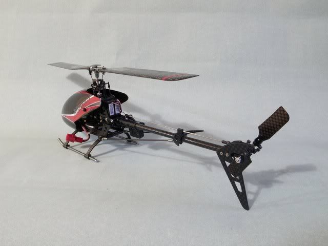 尾軸傳動系統與 V120D02 相同,但材質都是金屬品。依慣華牌慣例,垂直尾翼仍是把機子頂得惦腳尖,這個有點討厭。到時穿鞋墊高再磨掉一些就OK~ 又,尾旋翼材質較脆,又蛇足的印上假的碳纖紋,到時會換成 V120D02 的,因為除了材質以外,顏色也與頭罩非常搭。