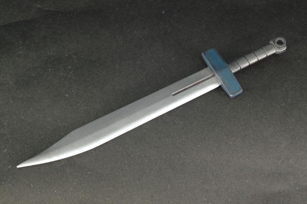 大刀刀刃處削薄,刀柄處的圓圈鑽洞(實際上是換了一個零件)