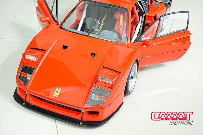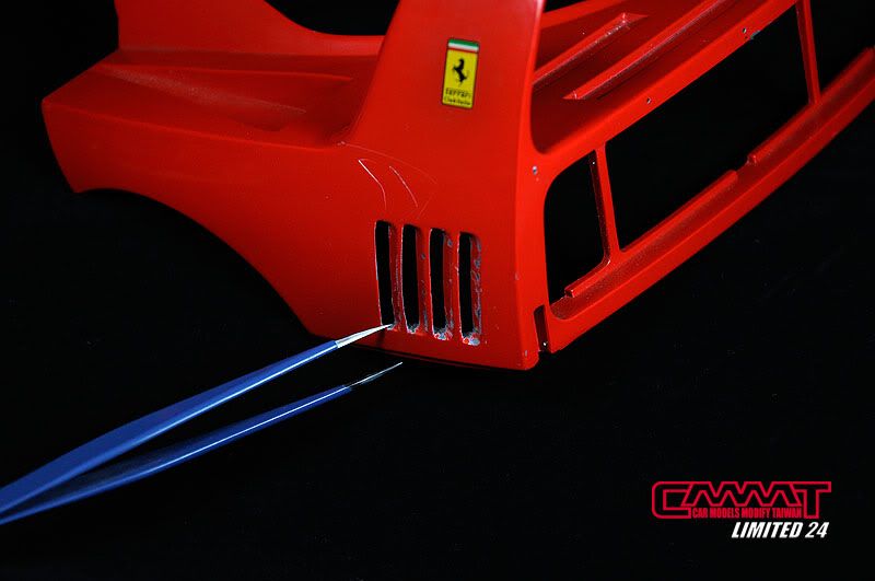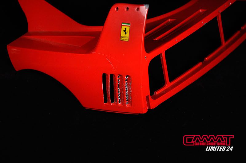 內裝搞定後開始進行外觀車殼的改造,不過F40太經典了,所以只針對所有的散熱孔進行挖孔動作,雖然只是用幾句話帶過,但是在挖孔的過程當中可是動用到重機械,經過血腥的破壞才能完成頂摳摳的車殼挖洞動作Orz...