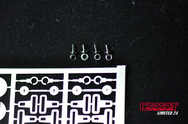 基礎打好後,開始在上面堆東西,而要堆的東西除了改套的零件外,還有一些非改套可以表現出來的零件替代,比如圖中上面四支扣環,拿來取代改套中有缺口的安全帶勾座,應該很多作者只會直接套用吧我猜,但是我當然有其他更好的替代品,還是會對改套進行改裝,所以說改套不是絕對的啦,完全要看作者的心思的囉~