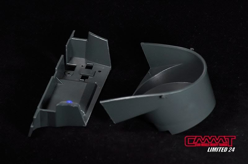 當初在切開這前面備胎座的時候有掙扎了一下,切了這個,世上就少了一個這模型的零件,後來想了想,切了或許就變成世上唯一改這樣的模型,所以心一橫就給它切下去了,最後當然是沒有讓我後悔囉XD