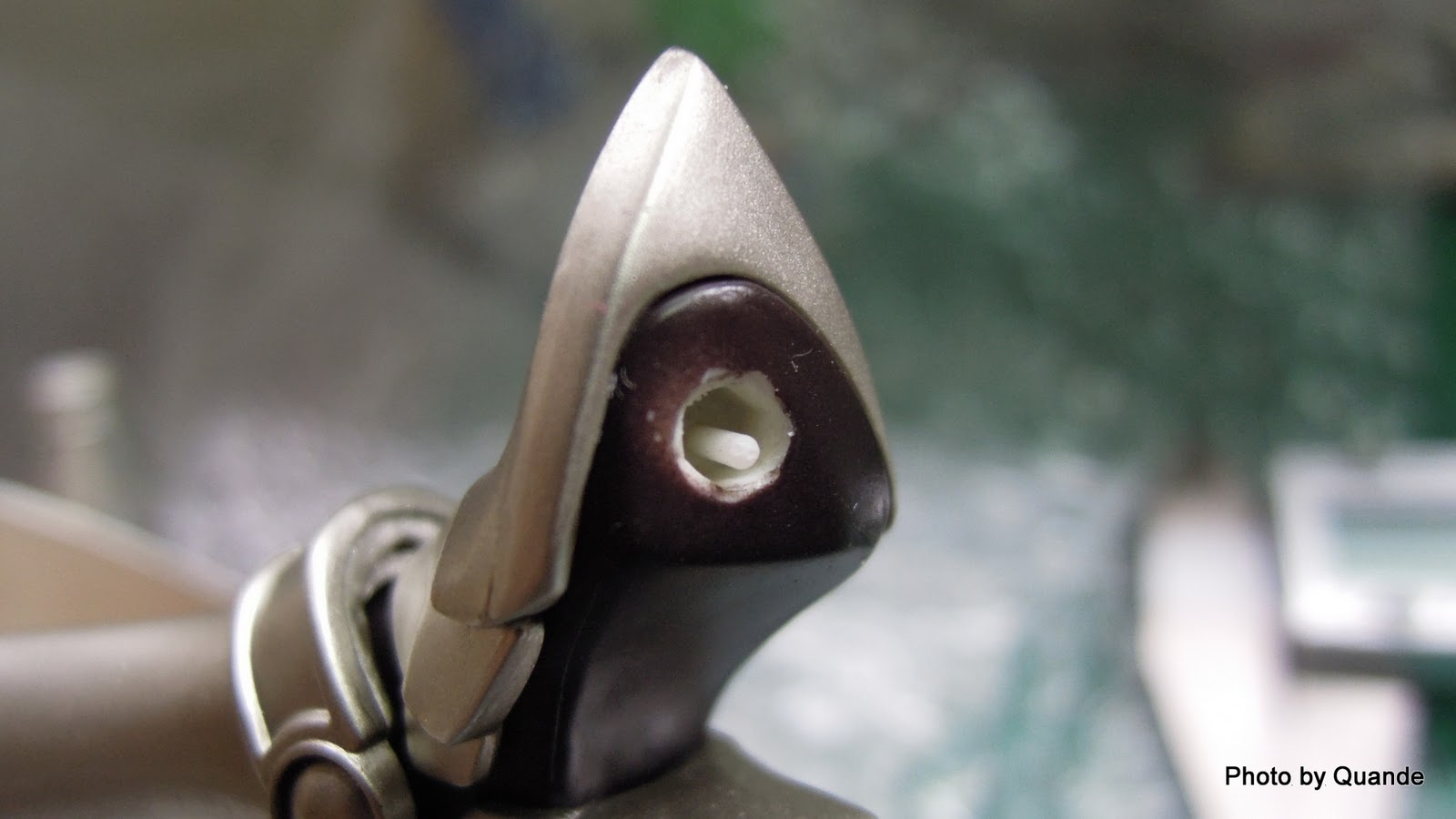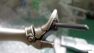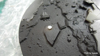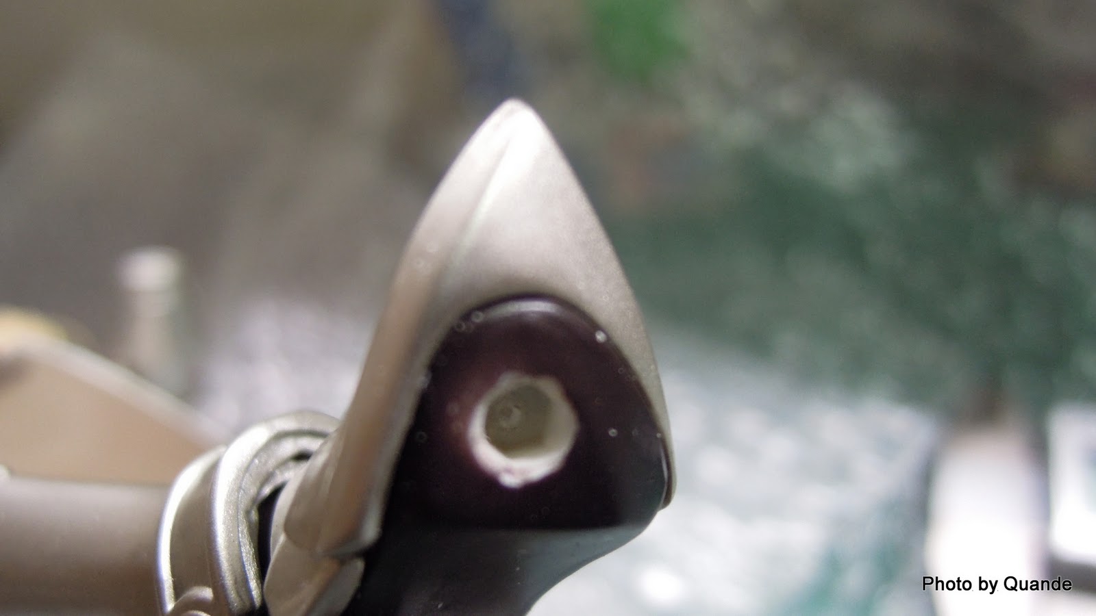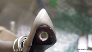 ↑取出斷在鞋內的卡榫,不過用1mm口徑的時候 不小心多鑽了一些 看得出來多了個小洞(沒有鑽穿)