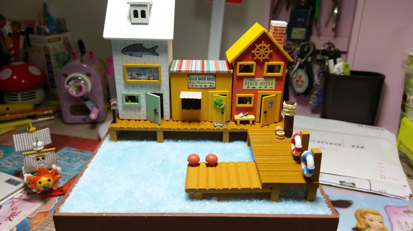 經過了半個月的組裝,終於完成房屋了,然後再逐一將公仔固定上去就大功告成了。