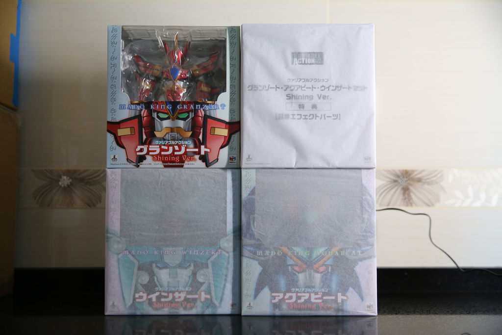 運輸盒打開,裡面有四小盒,分別為魔動火王(地之魔動王)、魔動風王(風之魔動王)、魔動水王(水之魔動王)、特典