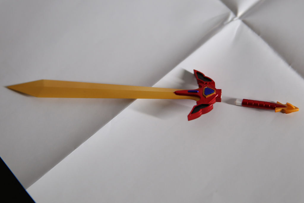 打開裡面是長這樣,上層為本體,下層為配件(座台、替換手掌、魔光劍)、變型說明書