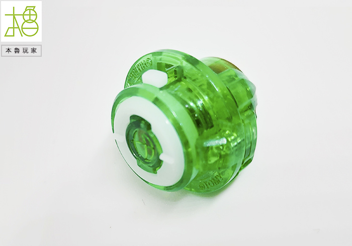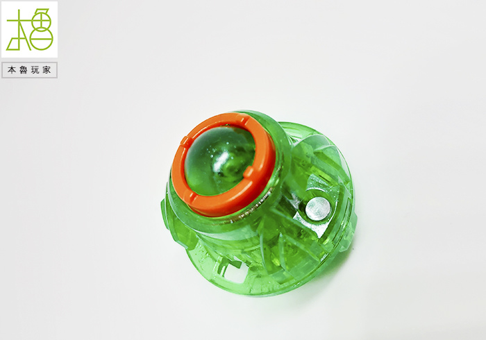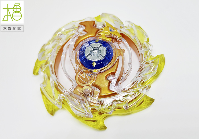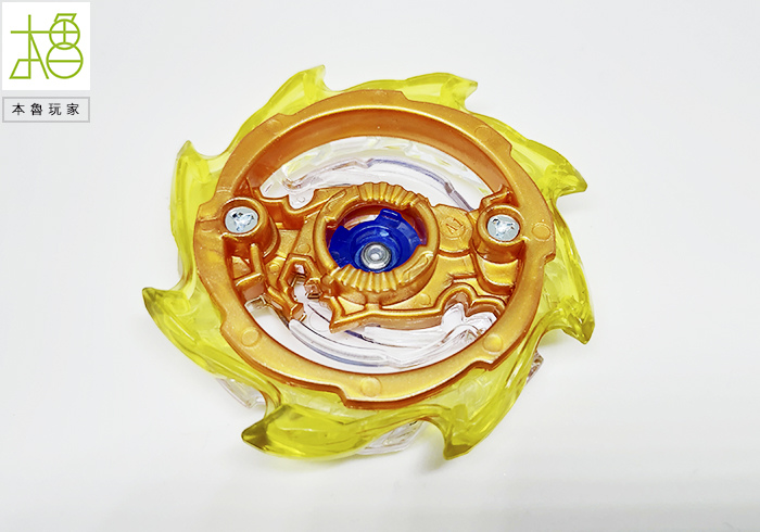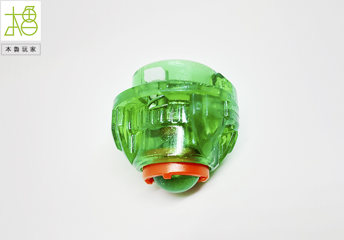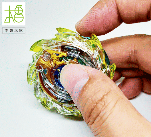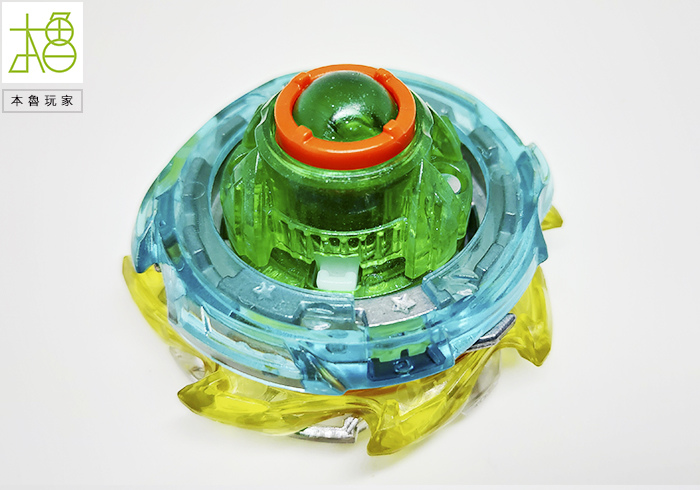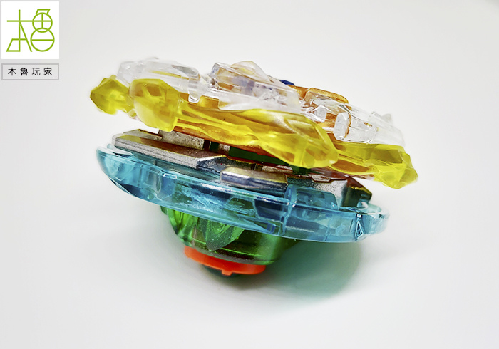 有看到很明顯的最外圈黃色的刃,整圈是可以轉動的,以往陀螺是整個在旋轉,龍卷翼龍是身首分離的,等於外圈被撞擊之後是不影響內圈軸心的,可以完全抵消,光是這樣就很op了。