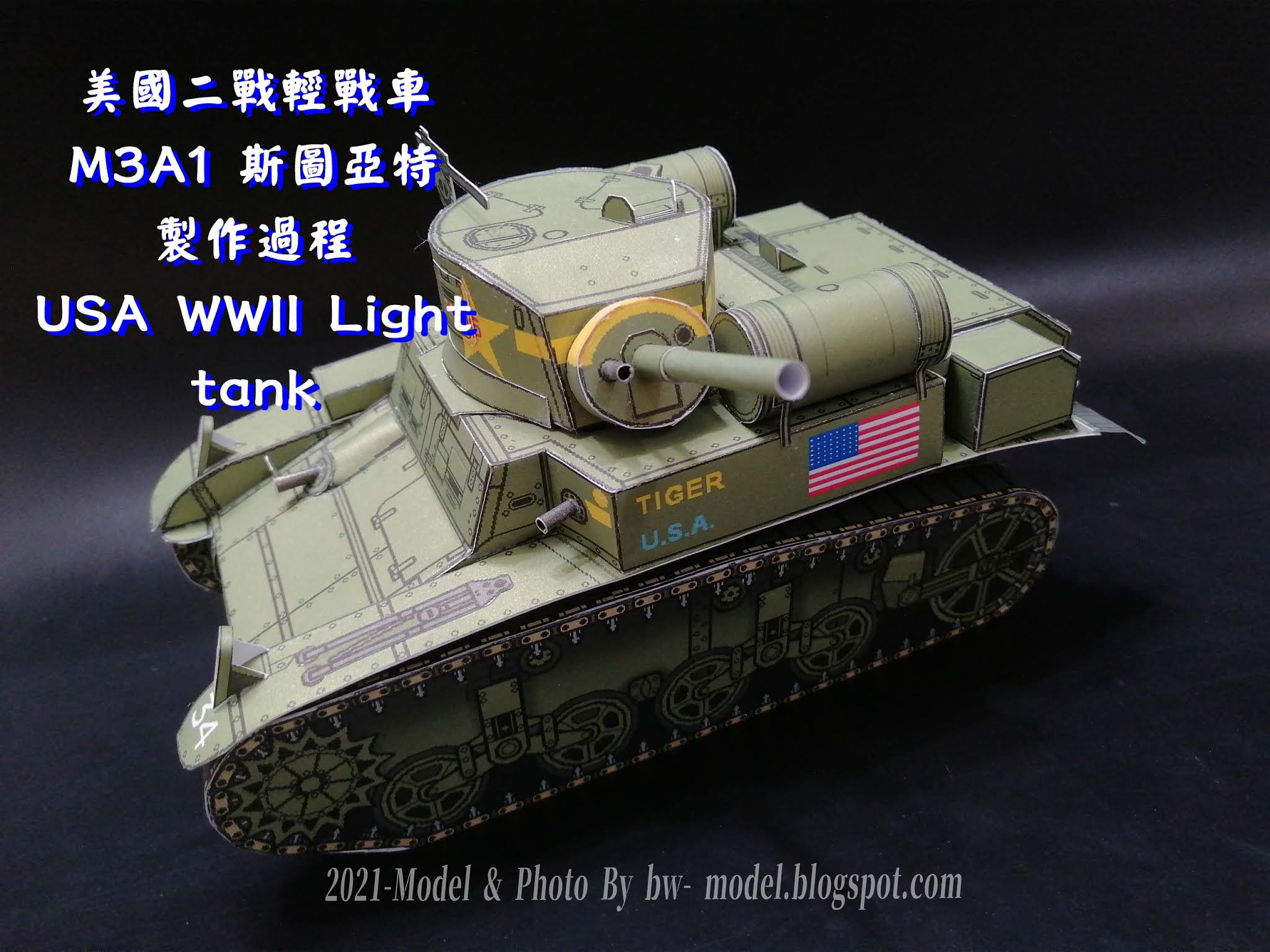 美國二戰輕戰車 M3A1斯圖亞特 USA WWII Light tank M3A1 Stuart [紙模型/製作]