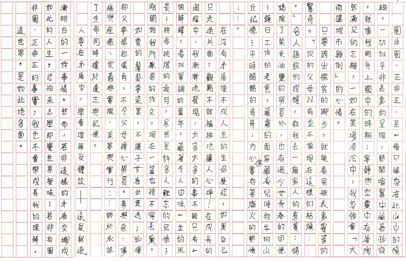 當然那些沒有拿高級分的作文,我覺得也不是代表不好,只是欣賞的角度不同吧.