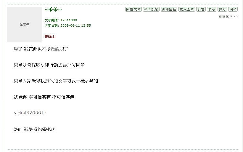 ~茶茶~ wrote:我們學校電腦是AMD的反正我對電腦技術不會我也不是想像中得那麼聰明不管你們覺得怎麼樣不管大家到底要把我當弟弟或妹妹都可以 反正我會盡全力去查出那個同學有沒有在01板上的帳號 這篇回應是我看錯了嗎你不是已經查出來盜你帳號的同學是誰了嗎