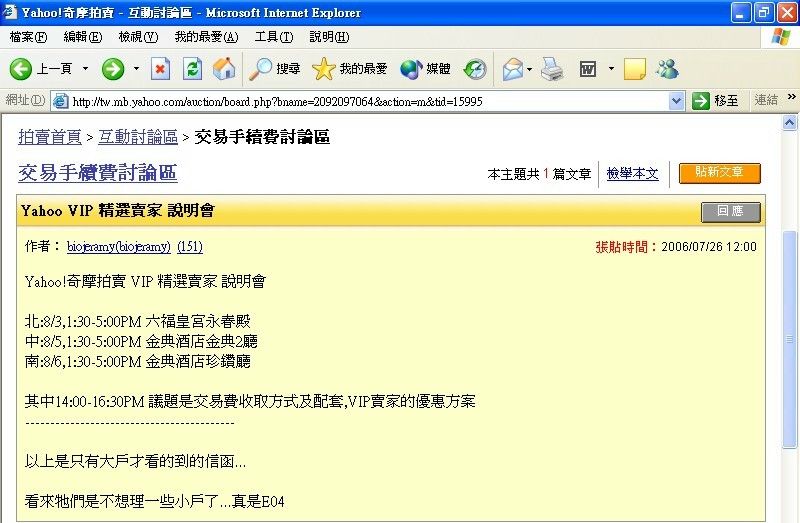 而YAHOO自視自己的強勢,所以強勢制定自己訂定的遊戲規則,我想這也是事實