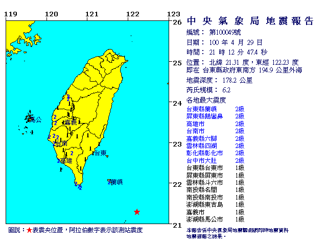tinvansiwa wrote:似乎上下晃了1下? 我是感覺二次第一次還以為我就狗撞我椅子因為地震前約3分吧....他就爬起來在晃悠了...不知道在晃啥第二次看他傻傻望著我...看著看著...又跳了幾下...無小倖 wrote:恩...高雄有感覺...小小的跳一2秒...接著輕微搖晃!! 剛剛台南的朋友打來問 "是不是有地震?"說他只感覺到搖晃 沒有跳高雄好似感覺比較大yagiallan wrote:瓶子的水有在晃動!但是沒搖很大力~ 我是看我的Vodak酒在搖..才確定是的想說還沒開始喝 怎麼會搖....