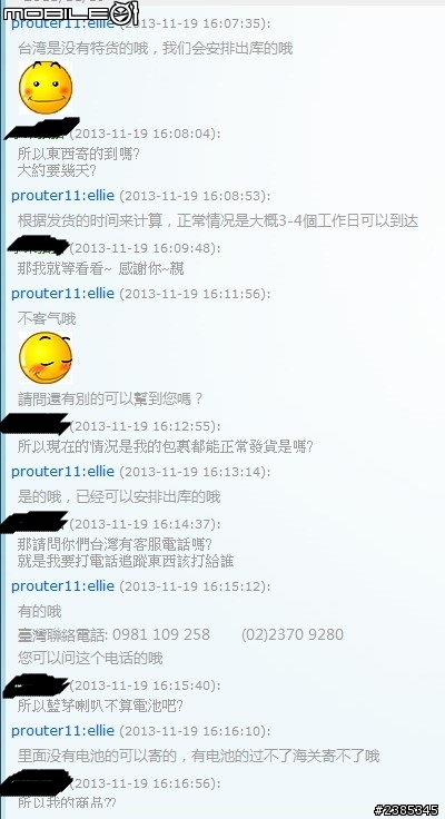 sony_555 wrote:樓主有後續處理狀況嗎...(恕刪) 這是我徒中跟全家.PRouter客服的內容客服只會瘋狂的鬼打牆~1.說你的商品有禁運品~含有電池~要我取出~或退貨2.經詢問~告知我的貨物可以正常發貨~馬上替我發貨3.系統訊提~告訴我因為含有電池是否要取出(沒告知取出後如何處理)4.沒消沒息~(我的貨就被丟在一旁沒人理~沒有配套措施)(我連繫....)5.又回到問題1.全家.PRouter根本沒有配套措施! 也沒告知如何處理取出的禁運品~或幫我退回給賣家?---------------------最後處理方式~採用網友意見~退貨重新包裝(又花了64人民幣(系統自己計算運費)將商品從轉運商寄到賣家那)最後我必須再國際轉運那裏取消使用轉運商全家.PRouter~他將國際轉運165人民幣費用退給我~將商品寄給原賣家~並請賣家延長打款時間~我請賣家將禁運品取出並重新包裝~新標一個小訂單~請賣家依循新單寄貨給我~這樣才可再有一筆國際轉運的必須付款的系統提示~我再用支付寶支付國際轉運費用~現在等待收到商品中