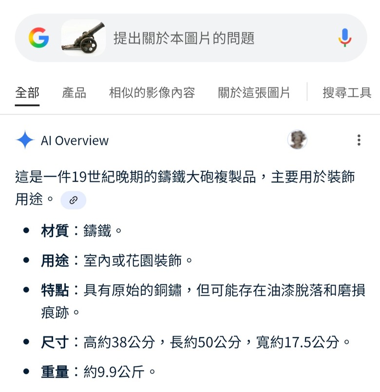 老何boss wrote:軍武 大砲 古砲 .模型 可轉動 .手工鑄鐵製.