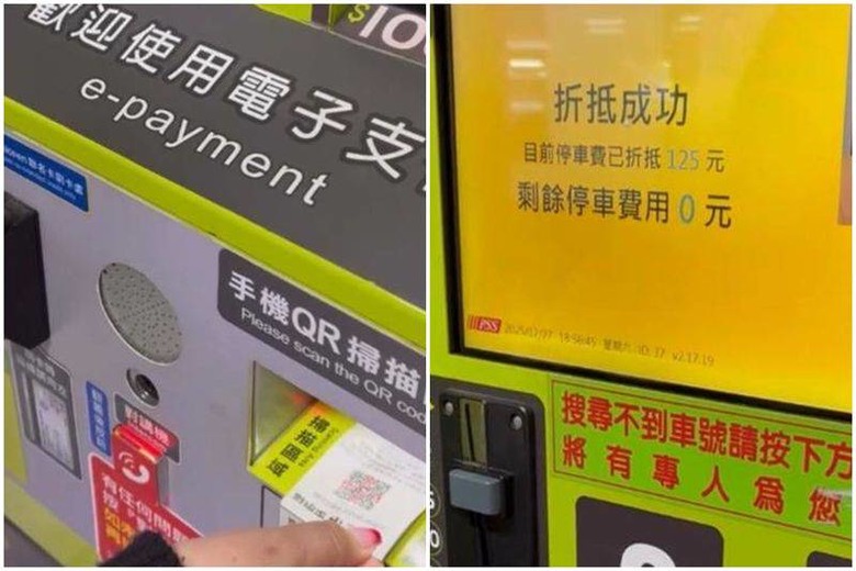 一名女網友使用繳費機凹槽裡其他人的小白單折抵停車費成功。(翻攝自Threads@lawa7057)