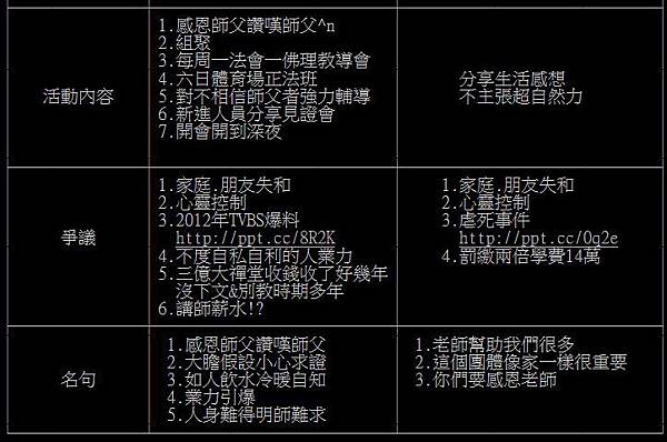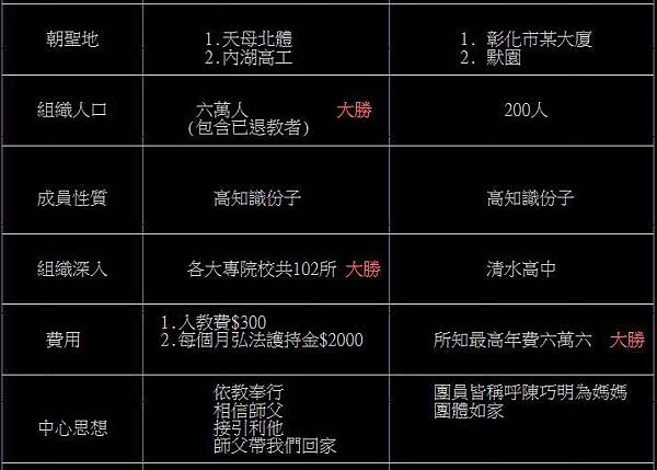 太利害 2007成立 現在100多學校 大學以上8000人解決辦法1.寄到教育部信箱 要求全國大學關閉社團 不過 改名換姓成立 你也沒則2.收集不法情資 向調查 檢查 系統舉發3.這麼大組織一定有很多人 組織化 集團化 要能清楚掌握 組織運作 才可以比一貫道 佛教利害慈濟功德會每月收款 雖慈濟發生多起爭議 但是對社會還是有貢獻