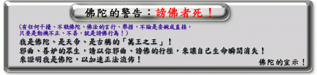 大家趕快自己整理一下手上 有關 他的恐嚇信,還有他的網頁原先恐嚇信的jpg檔,或庫存檔都弄成jpg檔整理一下,從他現在新的公告頁就知道,他現在可能要說自己是天帝而不是佛陀囉因為都改成天帝的第N封信囉接下來改版他一定會弄的更隱諱而不那麼直接表明自己,然後他還會修改留言版以及會員登入資料可被修改等地方..