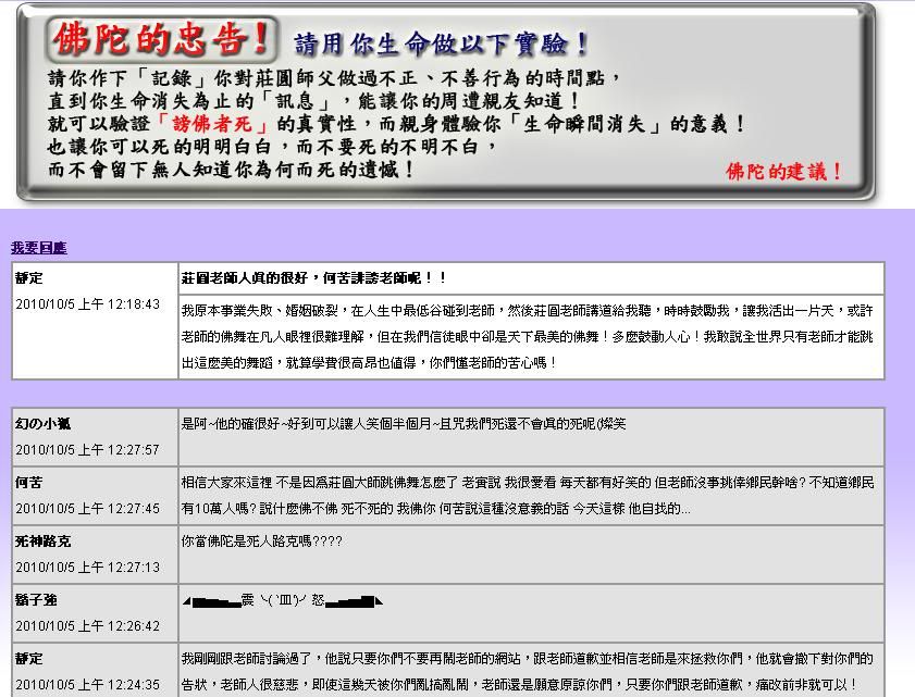 閨蘭葩卉 wrote:看來真的有媒體找上門去了大師竟然梭起來了首頁變成"閉門謝客" 他們害怕記者~~他們害怕記者~~他們害怕記者~~他們害怕記者~~記者大人們加油加油笑死人了,不是要推動正法嗎?記者幫他們免費打廣告還會害怕勒~