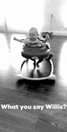 Peggy姐單手駕著嬰兒學步車衝了進來,一股腦地把浪哥撞倒在地。