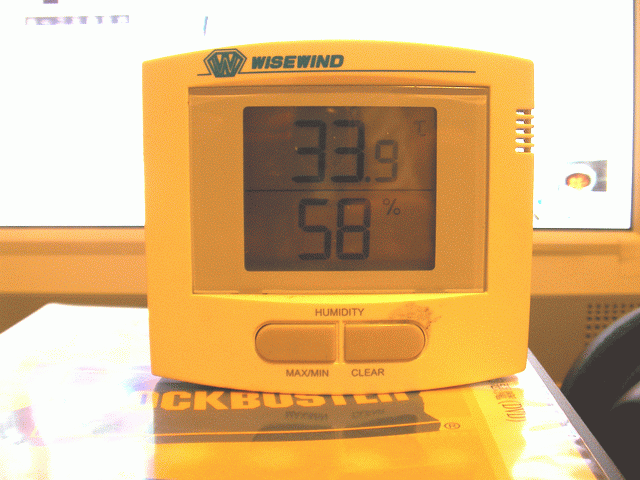 這幾天 台北真的熱死了我下午 都跑到星巴克 或是家裡附近的MOS 上網 吹冷氣現在 11點多了 我的房間還是33度多 只靠 排風扇+電扇 希望 我可以撐過這個夏天比起 Arizona 台北 算小兒科的 上周 那裏的溫度 有到44度的順便附上我房間的溫度計