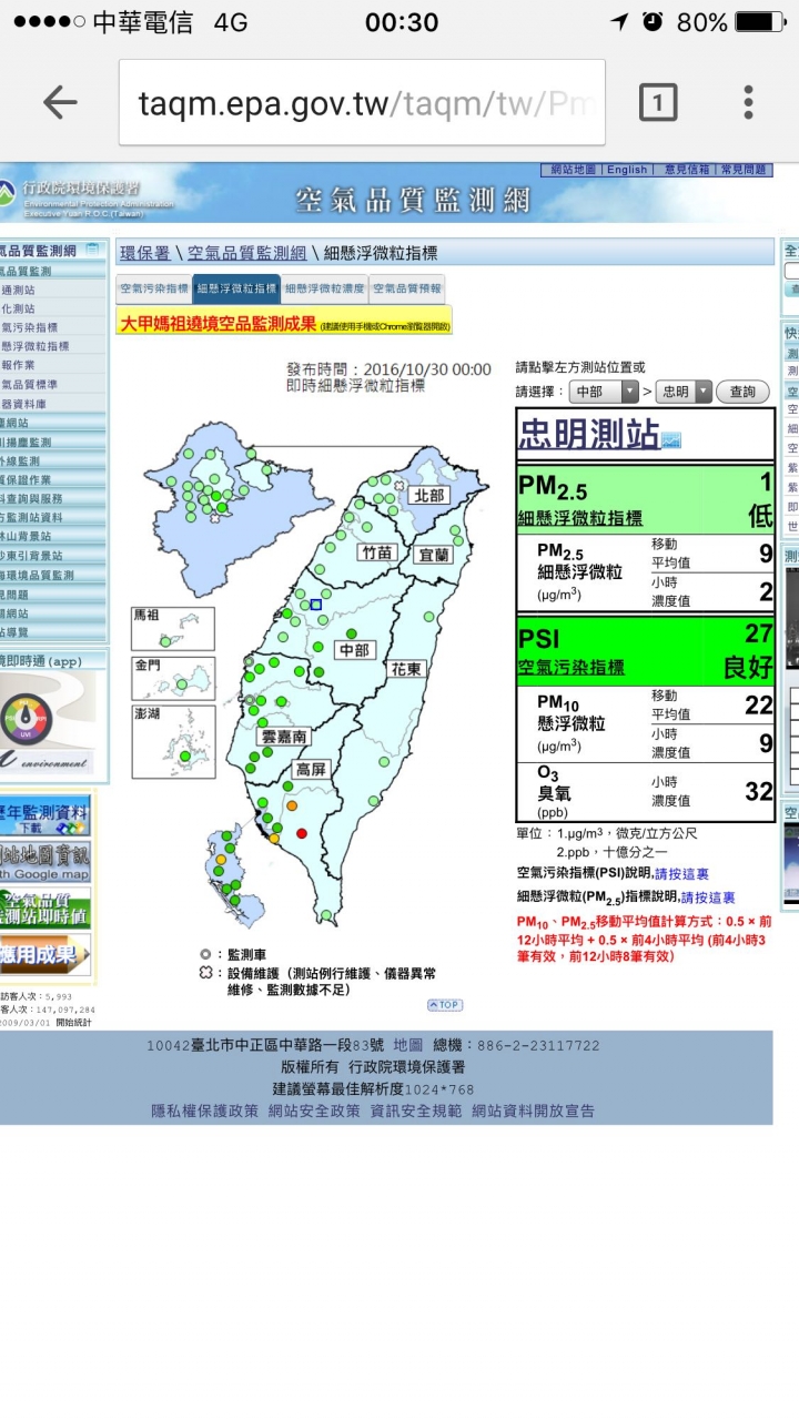 10月28日:空氣品質不佳 雲嘉南PM2.5紫爆
