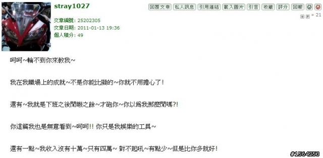 我書讀的沒有很多,不過我知道不要眼紅別人的,想要憑自已本事