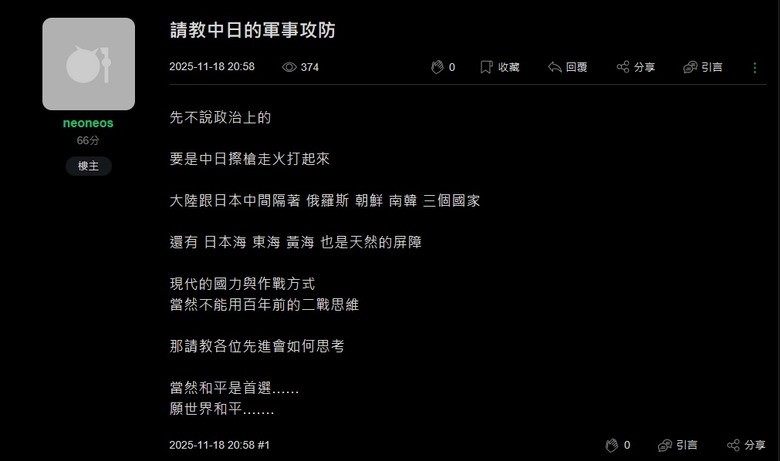 好圖狼 wrote:自民黨內傳出來的.有...(恕刪) 從政治上來說有可能畢竟黨內派系很多麻生能掌握的比重也不夠高之前我就說過了日本大機率要一段時間常常換首相不過比較值得觀察的是自民黨如果這樣不穩那非自民黨有沒有可能整合起來執政呢?現實來說機率不大在野並沒有一個有足夠威望的人領導那就算在野整合也非常容易分裂另一個可能性是自民黨會不會也分裂呢?現在的自民黨是與更右翼的合作麻生甚至想吃掉極右翼但自民黨內本來是多個派系的其實從左到右都有如果自民黨變得極右那會不會分裂也不是完全不可能