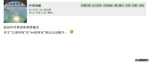 浮雲朝露 wrote:話說昨夜夢遊無意間撞見有支"正港洋砲"在"no姐背後"做出加油動作...