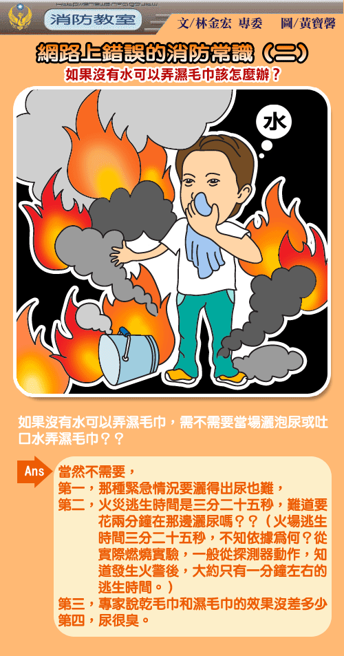 火災逃生時若沒有濕毛巾只有乾毛巾..要不要灑泡尿?或吐口水弄濕毛巾?