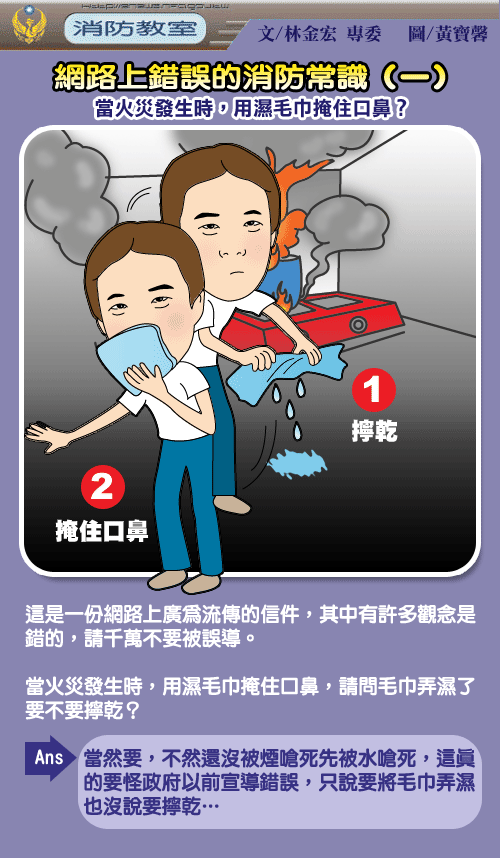 濕毛巾來協助自己逃離火場,因此大家就推論出乾毛巾不可以用,導致很多人