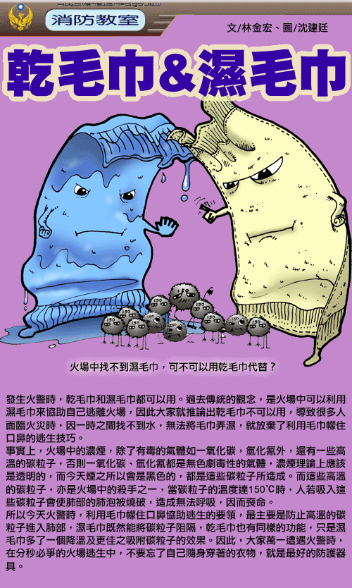 發生火警時,乾毛巾和濕毛巾都可以用。過去傳統的觀念,是火場中可以利用