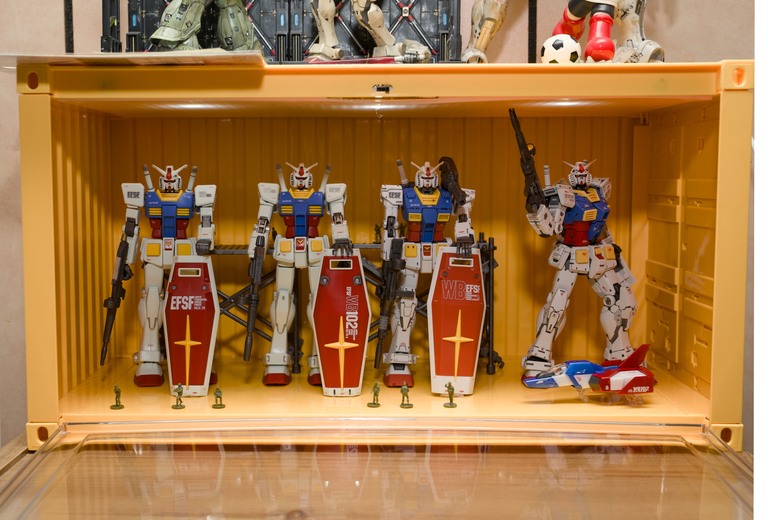 鋼彈F4終於組完了。鋼彈告一段落了,接下來要想轉換一下心情,想組別的,猜猜小弟我接下來要組什麼。左至右 ENTRY GRADE 1/144 RX-78-2 HGUC 1/144 RX-78-2 HG 1/144 RX-78-02 (GUNDAM THE ORIGIN) 45周年 UC RG 1/144 RX-78-2 Ver2.0