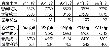 agp74 wrote:看看原本開放台塑是為了有競爭才能變得更好沒想到開放了只是為了多讓一家企業來吸血 沒有台塑,你連那一塊都省不到。biggun5305 wrote:中油這樣的績效真是笑死人,若是民營企業應該早就收攤了吧。 其實只是要收稅而已,當然附帶一堆財團搭順風車(什麼欣x等外省掛天然氣公司)