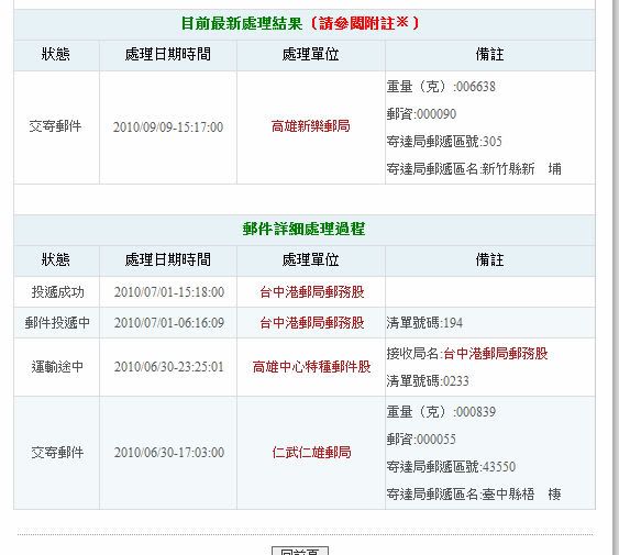 後來撥電話到桃園問 說他們九月一號已經送出到下個單位